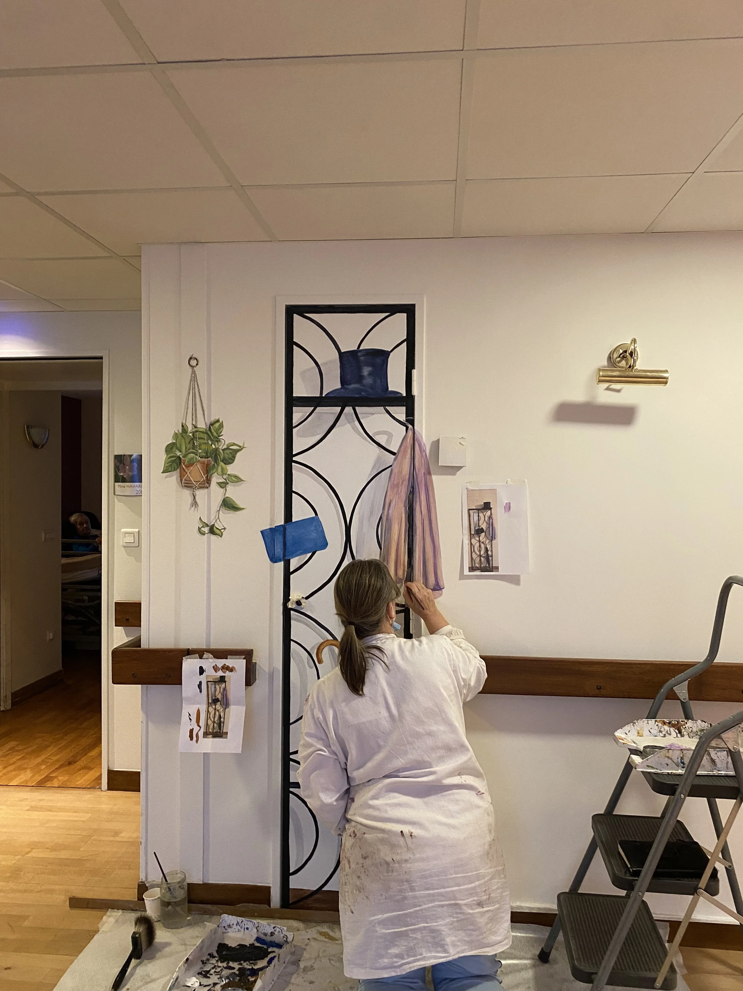 L’art mural existe depuis la nuit des temps avec les peintures rupestres ou les fresques pompéiennes par ex. Les techniques sont multiples, patines, imitation de matières comme le marbre, trompe l’œil le plus réaliste…J’ai été formée à ces techniques par Jean Sablé, meilleur ouvrier de France dans son école à Versailles. Il m’a transmis son savoir-faire rigoureux et exigeant.