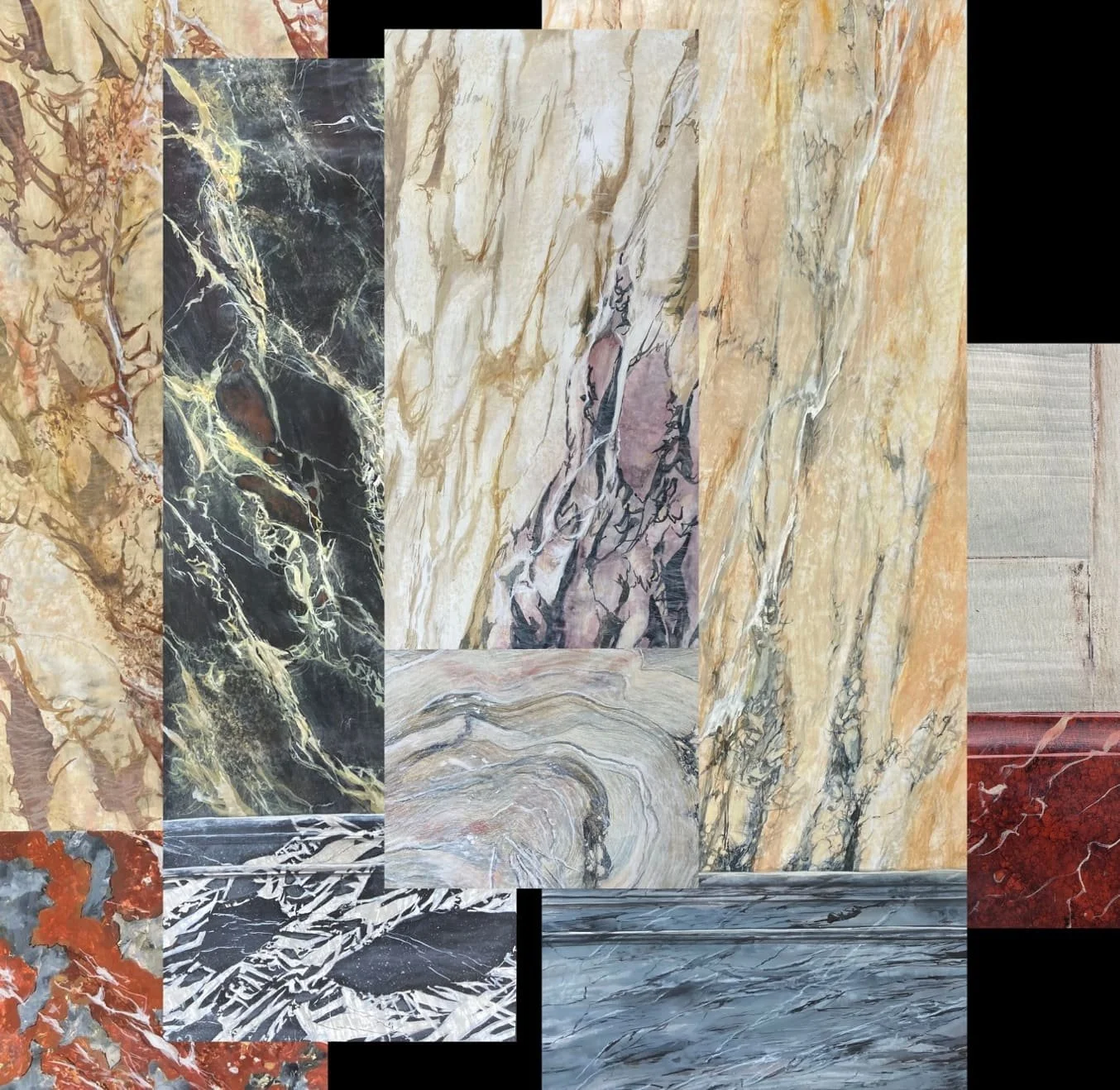 Les marbres par leur beauté ont toujours été utilisés dans la décoration. L'imitation des marbres permet de préserver les ressources et de réaliser des décors classiques et contemporains sur tous types de supports (murs, plinthes, meubles...).